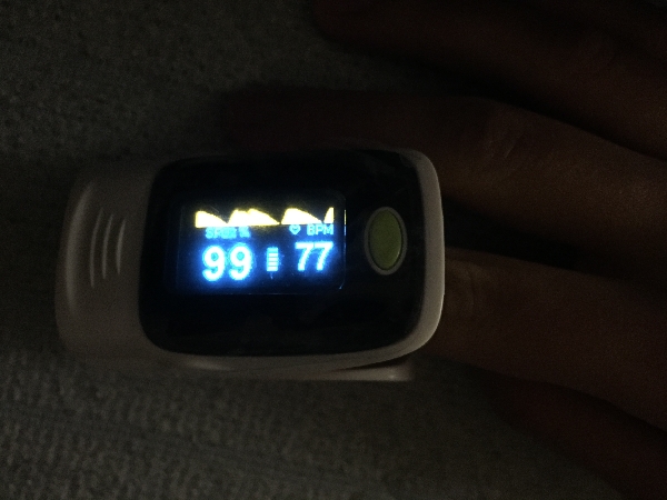 ※左の数値がSPO2、右の数値が1分間あたりの心拍数